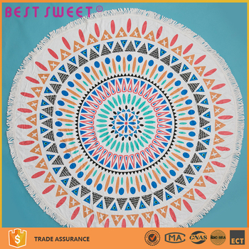 Chino Al Por Mayor impreso ronda personalizado toalla de playa con borlas
